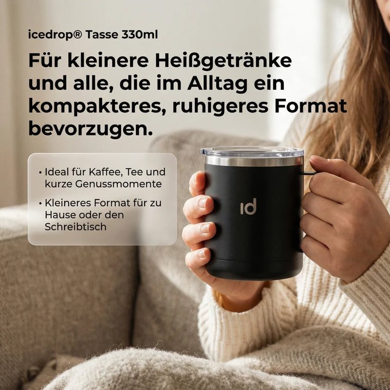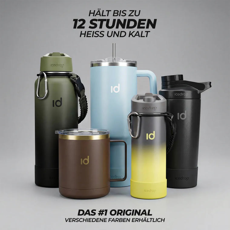 Alle Produkte gehören zur icedrop® Thermo-Familie und teilen die gleichen Kernvorteile wie lange heiße oder eiskalte Getränke, hochwertigen Edelstahl und Alltagstauglichkeit. Unterschiede wie Größe, Deckelvariante, Trinksystem oder Strohhalm hängen vom jeweiligen Produkt ab.
