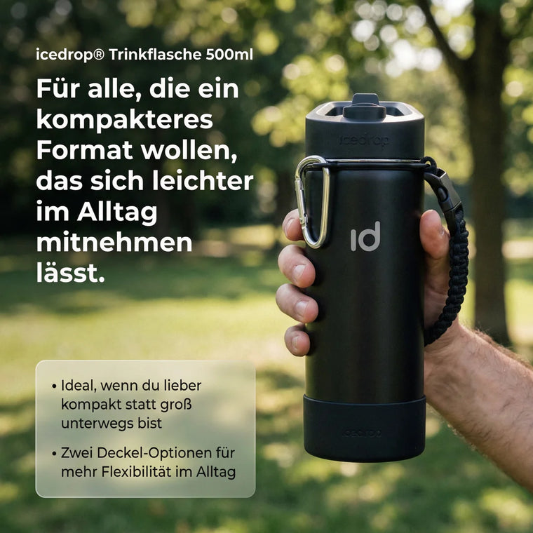 Die icedrop® Thermo-Familie ist dafür gemacht, dich durch den Tag zu begleiten, ohne dass du ständig an auslaufende Getränke denken musst.